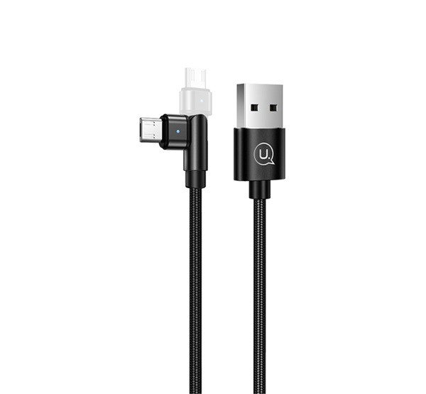 USAMS U60 adatkábel (USB - microUSB, forgatható fej, LED jelzés, 100cm) FEKETE