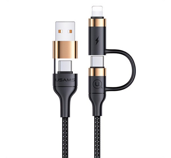 USAMS U62 adatkábel (USB/Type-C - lightning/Type-C, 60W, PD gyorstöltő, 120cm) FEKETE