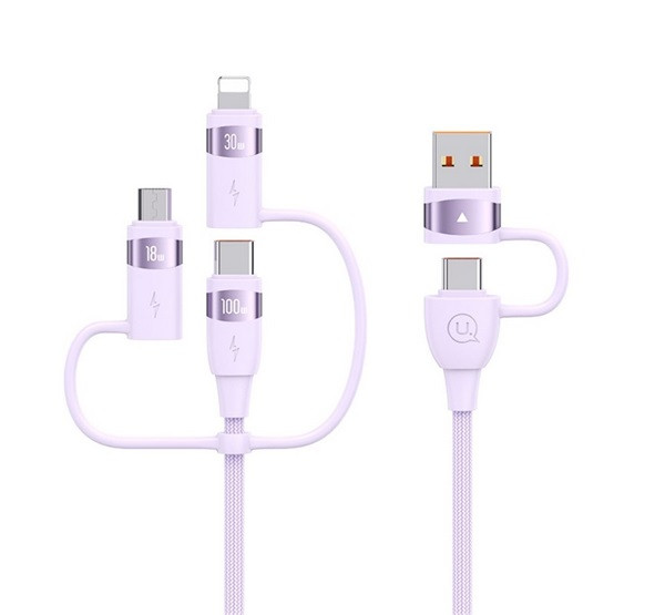 USAMS U85 töltőkábel 5in1 (Type-C/USB - Type-C/lightning/microUSB, 100W, PD gyorstöltő, 120cm) LILA
