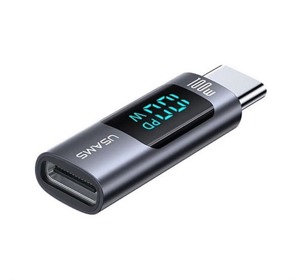 USAMS adapter (Type-C aljzat - Type-C, 100W, adatátvitel és töltés, LED kijelző) SÖTÉTSZÜRKE