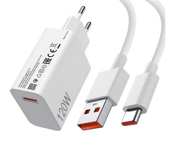 XIAOMI MDY-16-EN hálózati töltő USB aljzat (120W, PD gyorstöltő + Type-C kábel) FEHÉR