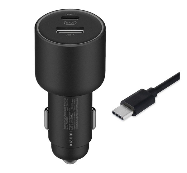 XIAOMI Mi autós töltő USB+Type-C aljzat (67W, gyorstöltő + Type-C kábel) FEKETE