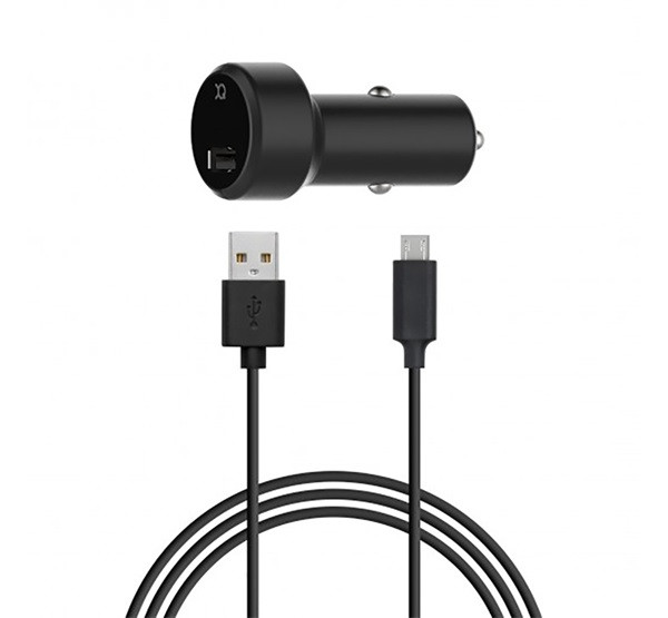 XQISIT autós töltő USB aljzat (10W, gyorstöltő + microUSB kábel) FEKETE