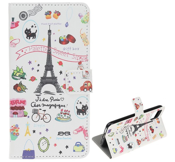 Tok álló, bőr hatású (FLIP, oldalra nyíló, asztali tartó, Eiffel torony) FEHÉR