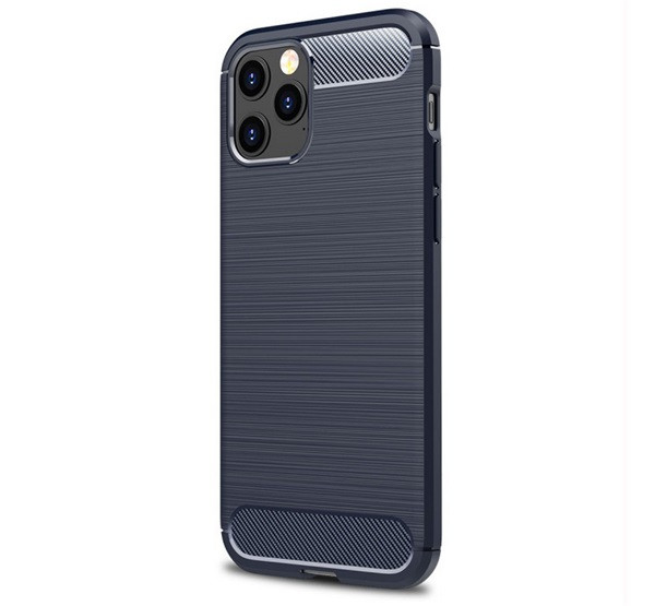 Szilikon telefonvédő (ütésállóság, légpárnás sarok, szálcsiszolt, karbon minta) SÖTÉTKÉK