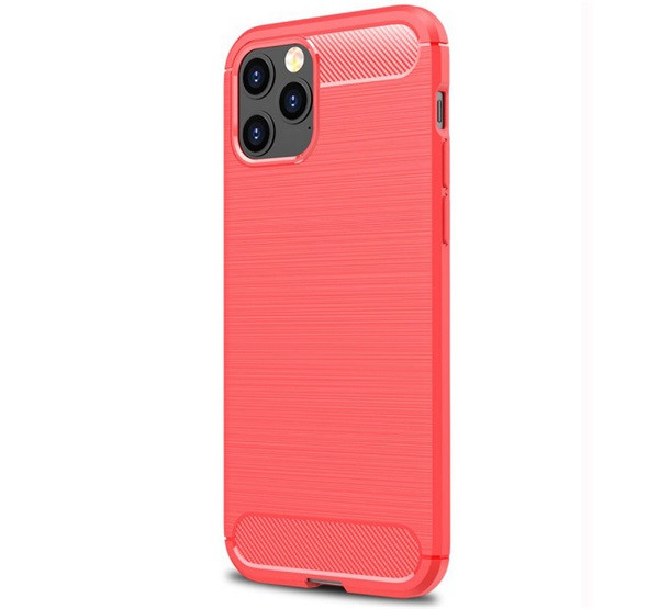 Szilikon telefonvédő (ütésállóság, légpárnás sarok, szálcsiszolt, karbon minta) PIROS
