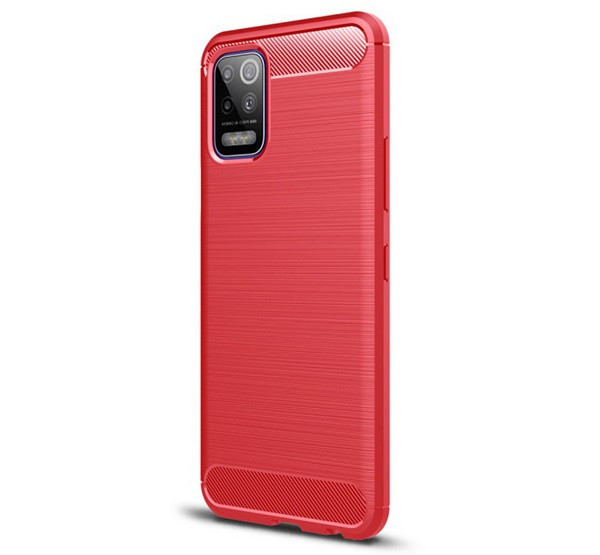 Szilikon telefonvédő (ütésállóság, légpárnás sarok, szálcsiszolt, karbon minta) PIROS