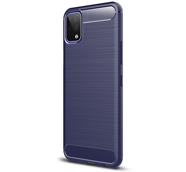 Szilikon telefonvédő (ütésállóság, légpárnás sarok, szálcsiszolt, karbon minta) SÖTÉTKÉK