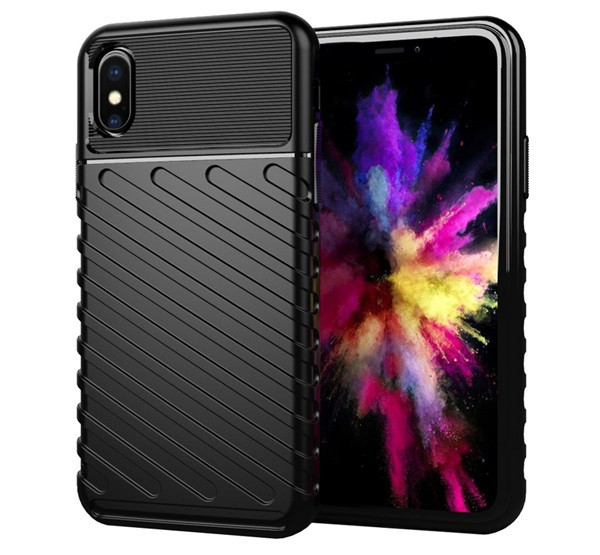 Szilikon telefonvédő (ütésállóság, csíkos, dombor minta) FEKETE