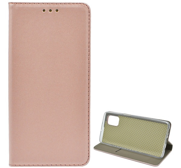 Tok álló, bőr hatású (FLIP, oldalra nyíló, asztali tartó) ROZÉARANY
