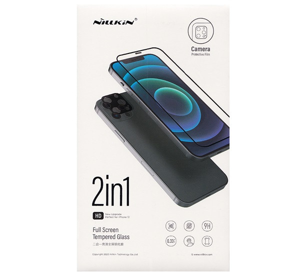 NILLKIN képernyővédő üveg 2in1 (3D, 0.33mm, 9H + kameravédő fólia) FEKETE
