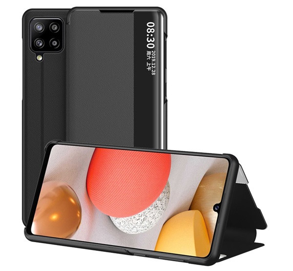 Tok álló, bőr hatású (aktív FLIP, oldalra nyíló, asztali tartó, ablakos) FEKETE