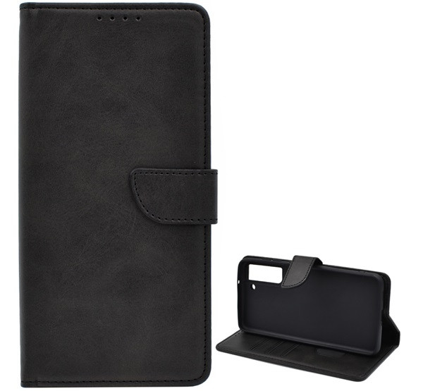 Tok álló, bőr hatású (FLIP, oldalra nyíló, asztali tartó, prémium) FEKETE