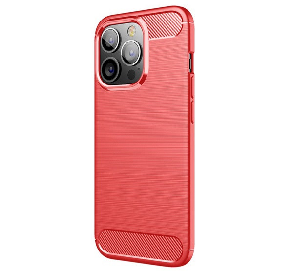 Szilikon telefonvédő (ütésállóság, légpárnás sarok, szálcsiszolt, karbon minta) PIROS