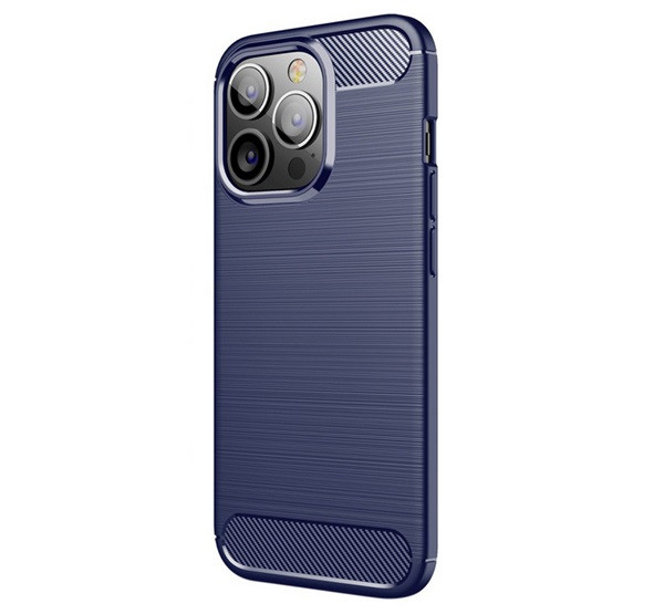Szilikon telefonvédő (ütésállóság, légpárnás sarok, szálcsiszolt, karbon minta) SÖTÉTKÉK
