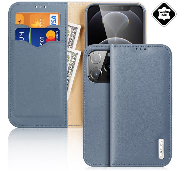 DUX DUCIS HIVO tok álló, valódi bőr (FLIP, oldalra nyíló, asztali tartó, kártyazseb, RFID) VILÁGOSKÉK