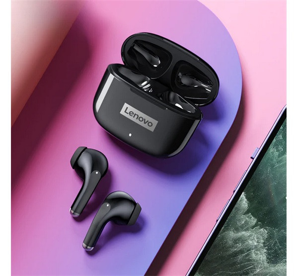 LENOVO LP40 bluetooth fülhallgató SZTEREO (v5.1, TWS, mikrofon, zajszűrő + töltőtok) FEKETE