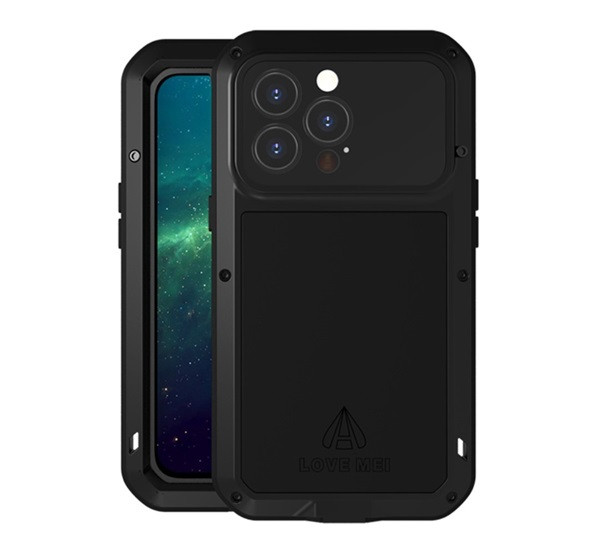 LOVE MEI Powerful defender telefonvédő (fém keret, erős ütésállóság, porálló + képernyővédő üveg) FEKETE