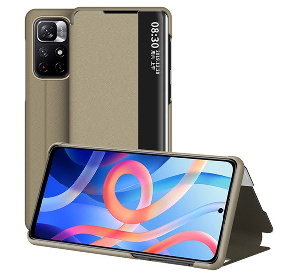 Tok álló, bőr hatású (aktív FLIP, oldalra nyíló, asztali tartó, ablakos) VILÁGOSBARNA