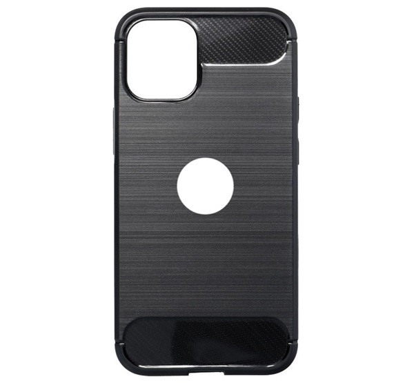 Szilikon telefonvédő (ütésállóság, légpárnás sarok, szálcsiszolt, karbon minta, logó kivágás) FEKETE