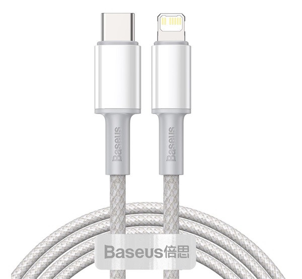 BASEUS adatkábel (Type-C - lightning, 20W, PD gyorstöltő, törésgátló, 200cm) FEHÉR
