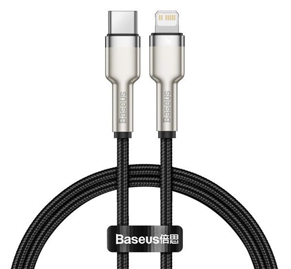 BASEUS CAFULE adatkábel (Type-C - lightning, 2.4A, PD gyorstöltő, cipőfűző, 25cm) FEKETE