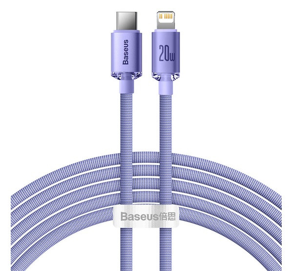 BASEUS CRYSTAL SHINE adatkábel (Type-C - lightning, 20W, PD gyorstöltő, cipőfűző, 200cm) LILA