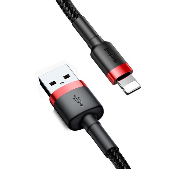 BASEUS CAFULE adatkábel (USB - lightning, 2.4A, gyorstöltő 3.0, cipőfűző, 100cm) FEKETE/PIROS