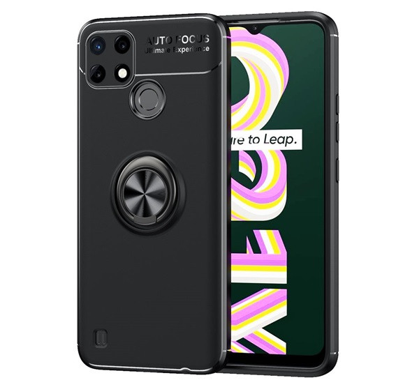 Szilikon telefonvédő (asztali tartó, tartógyűrű, 360°, mágneses) FEKETE