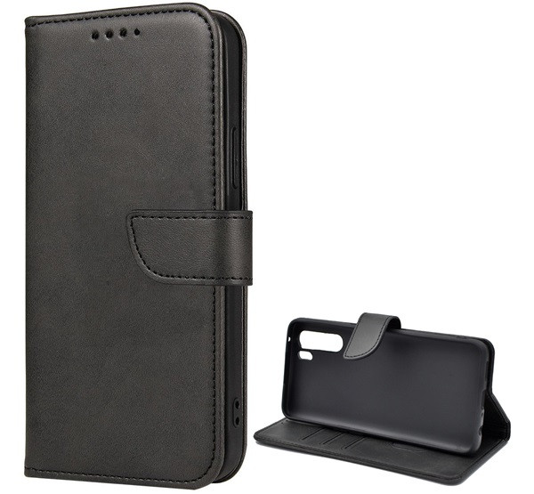 Tok álló, bőr hatású (FLIP, oldalra nyíló, asztali tartó, prémium) FEKETE
