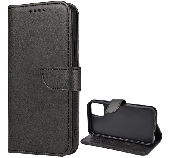 Tok álló, bőr hatású (FLIP, oldalra nyíló, asztali tartó, prémium) FEKETE