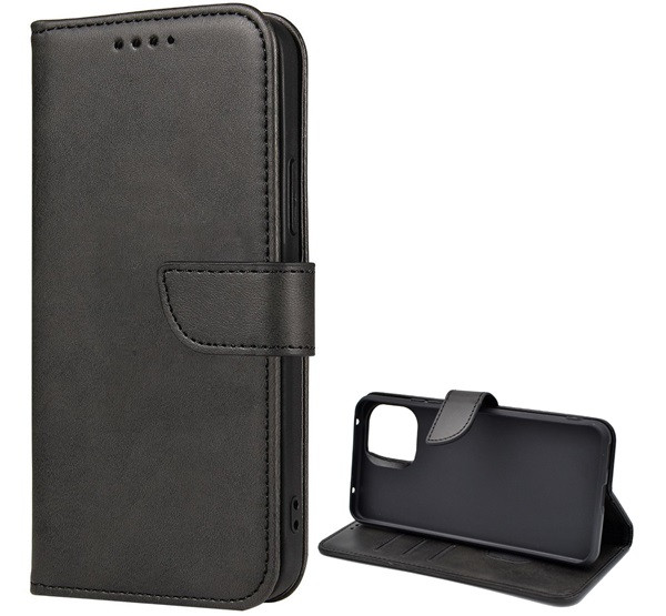 Tok álló, bőr hatású (FLIP, oldalra nyíló, asztali tartó, prémium) FEKETE
