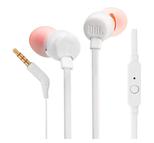 JBL T110 fülhallgató SZTEREO (3.5mm jack, felvevő gomb, lapos kábel) FEHÉR