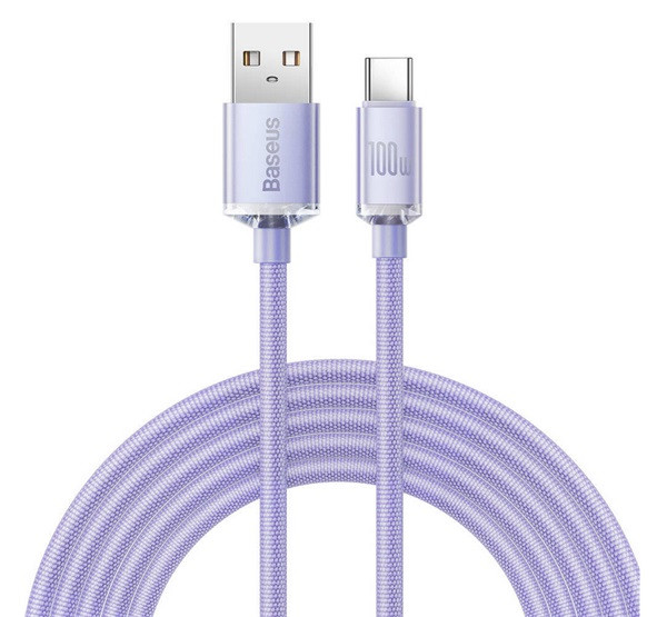 BASEUS CRYSTAL SHINE adatkábel (USB - Type-C, 100W, PD gyorstöltő, cipőfűző, 200cm) LILA
