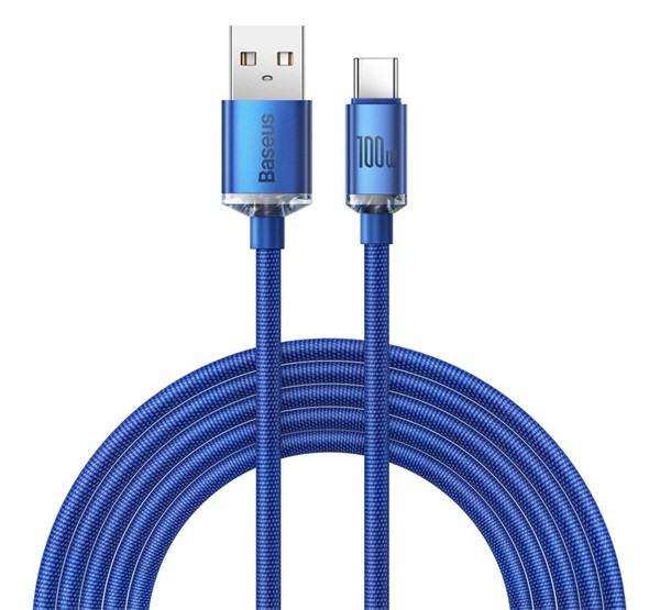 BASEUS CRYSTAL SHINE adatkábel (USB - Type-C, 100W, PD gyorstöltő, cipőfűző, 200cm) SÖTÉTKÉK