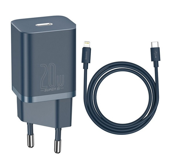 BASEUS SUPER SI hálózati töltő Type-C aljzat (20W, PD gyorstöltő + Type-C - lightning kábel) SÖTÉTKÉK