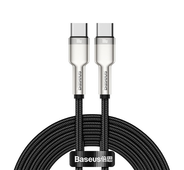 BASEUS CAFULE adatkábel (Type-C - Type-C, 100W, PD gyorstöltő, cipőfűző, 200cm) FEKETE