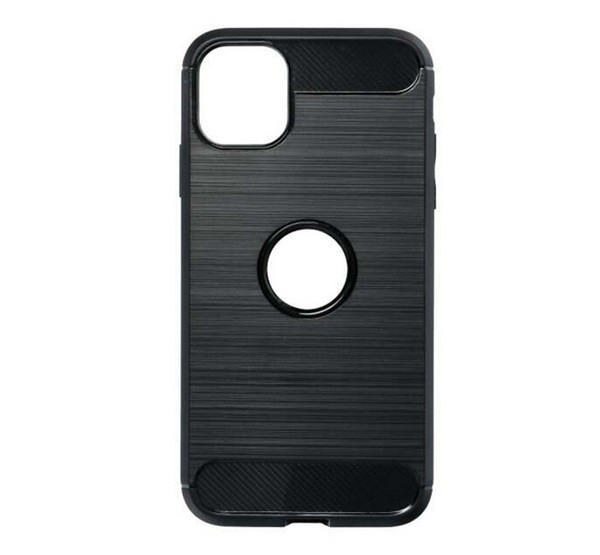 Szilikon telefonvédő (ütésállóság, légpárnás sarok, szálcsiszolt, karbon minta, logó kivágás) FEKETE