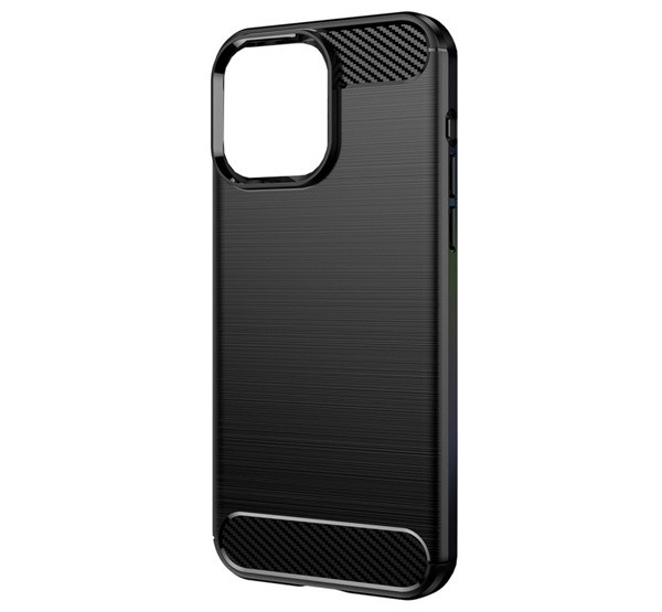 Szilikon telefonvédő (ütésállóság, légpárnás sarok, szálcsiszolt, karbon minta) FEKETE