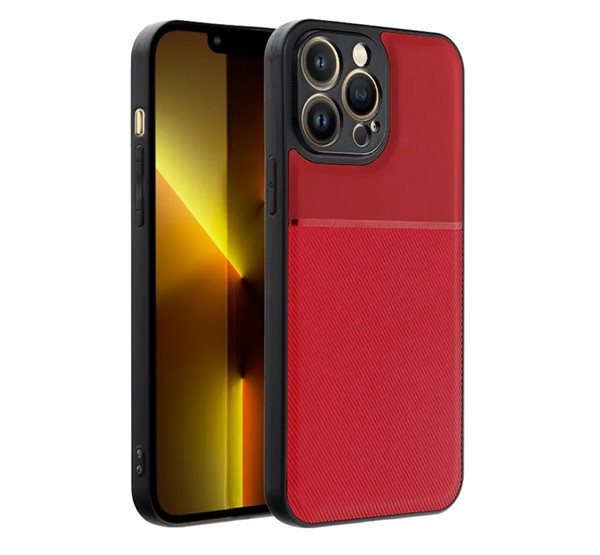 Szilikon telefonvédő (ütésállóság, mágneses, bőr hatású hátlap, csíkos) PIROS
