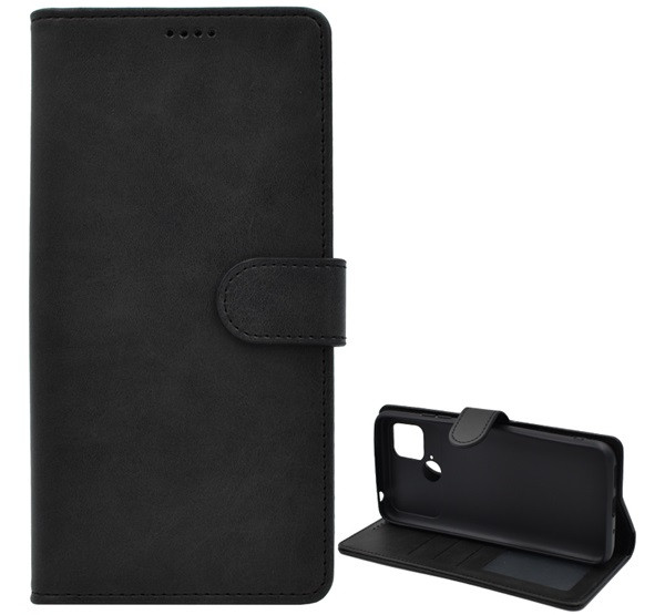 Tok álló, bőr hatású (FLIP, oldalra nyíló, asztali tartó, prémium) FEKETE