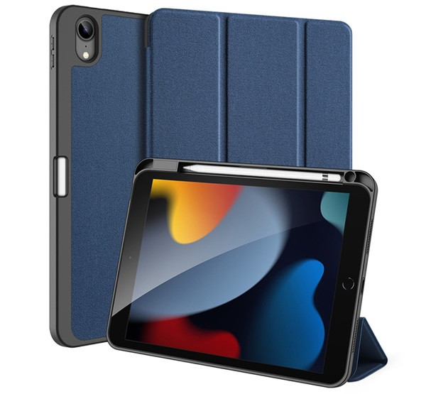 DUX DUCIS DOMO tok álló, bőr hatású (aktív FLIP, oldalra nyíló, TRIFOLD, asztali tartó, ceruza tartó) SÖTÉTKÉK