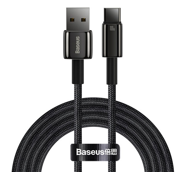 BASEUS TUNGSTEN GOLD adatkábel (USB - Type-C, 100W, gyorstöltő, törésgátló, 200cm) FEKETE