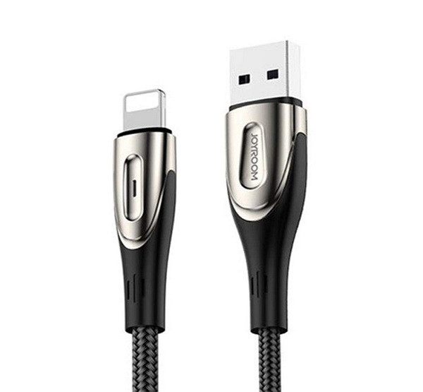 JOYROOM SHARP adatkábel (USB - lightning, 2.4A, gyorstöltő, cipőfűző, LED jelzés, 200cm) FEKETE