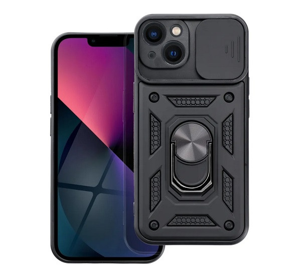 Defender szilikon telefonvédő (ütésállóság, tartógyűrű, kameravédő) FEKETE