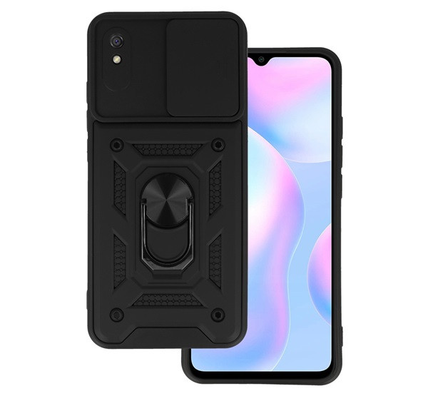 Defender szilikon telefonvédő (ütésállóság, tartógyűrű, kameravédő) FEKETE