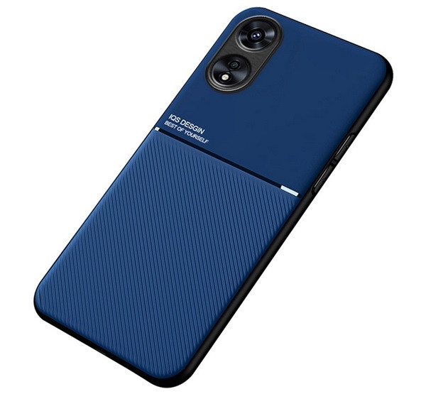 Szilikon telefonvédő (ütésállóság, mágneses, bőr hatású hátlap, csíkos) SÖTÉTKÉK