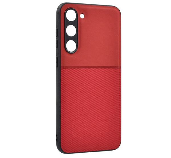 Szilikon telefonvédő (ütésállóság, mágneses, bőr hatású hátlap, csíkos) PIROS