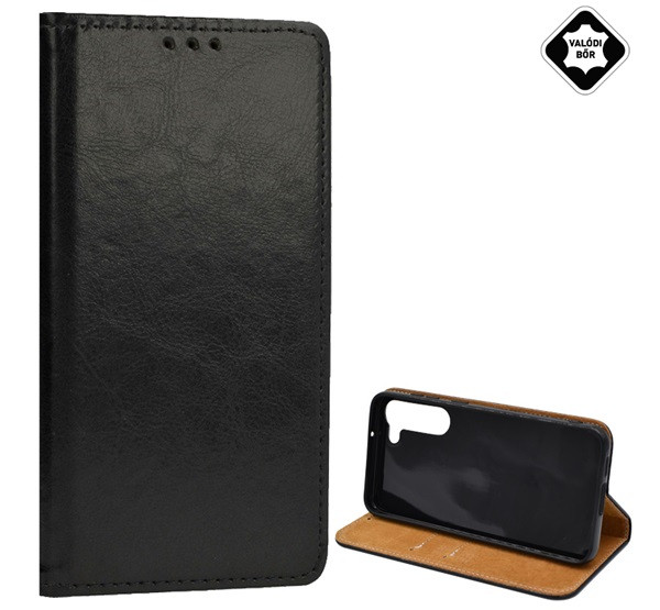 Tok álló, valódi bőr (FLIP, oldalra nyíló, asztali tartó) FEKETE