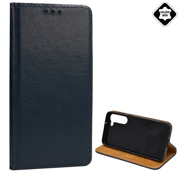Tok álló, valódi bőr (FLIP, oldalra nyíló, asztali tartó) SÖTÉTKÉK